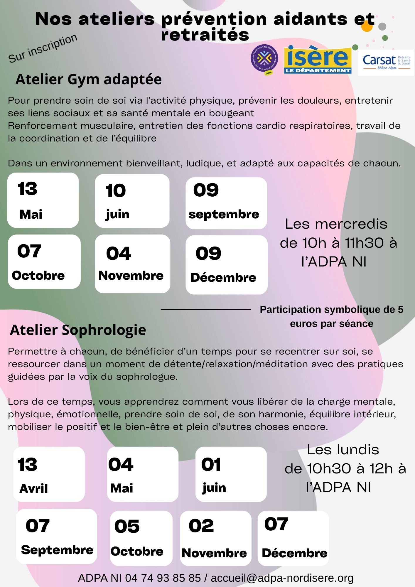 L’ADPA NI vous informe de la mise en place de nouveaux ateliers de prévention sur cette année 2026,