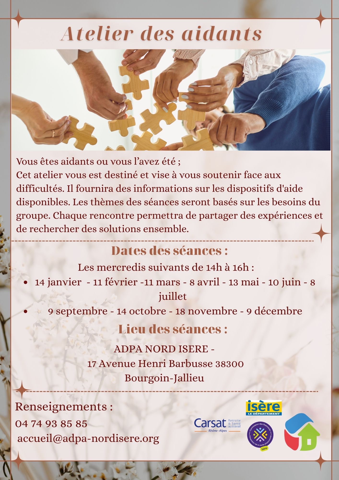 Atelier des aidants : groupe de parole sur 3 bureaux (Pont de Chéruy /La Tour du Pin/ Bourgoin-Jallieu) www.adpa
